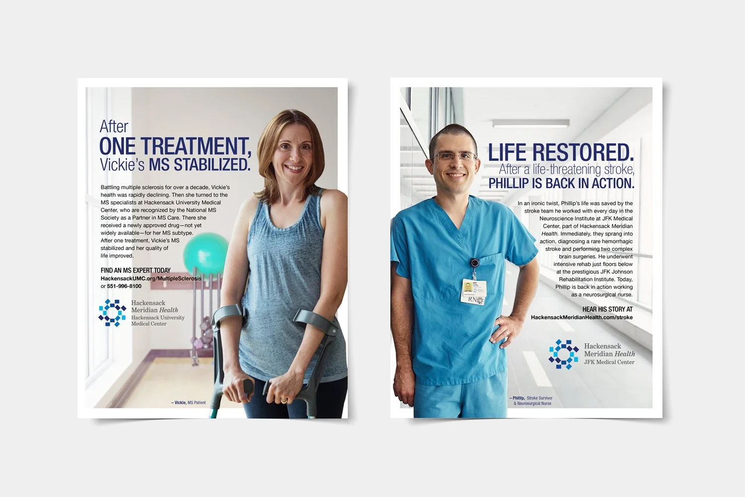 Hackensack and Meridian Health came together to form one unified health system serving northern New Jersey. With the new logo and combined teams, we rolled out a campaign that built on the client’s broader “Orchestrating Excellence” brand evolution. The goal? To introduce the new brand to the people of New Jersey and to energize the internal staff around this exciting new chapter.